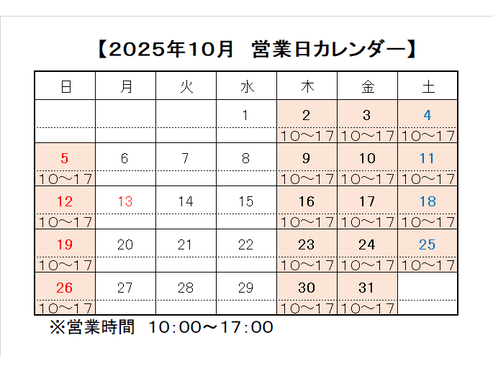 営業日 :毎週 木曜・金曜・土曜・日曜日