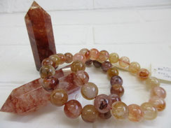 水晶のクラックの中に酸化鉄が入りこみ再度結晶化したため、赤や黄色の膜が張ったような模様が幻想的で随所に虹が入り、「虹の石」と呼ばれることもあるそうです。