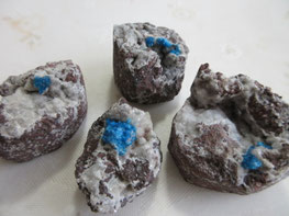 沸石の一種の母岩にコバルトブルーの結晶が目を引きます。